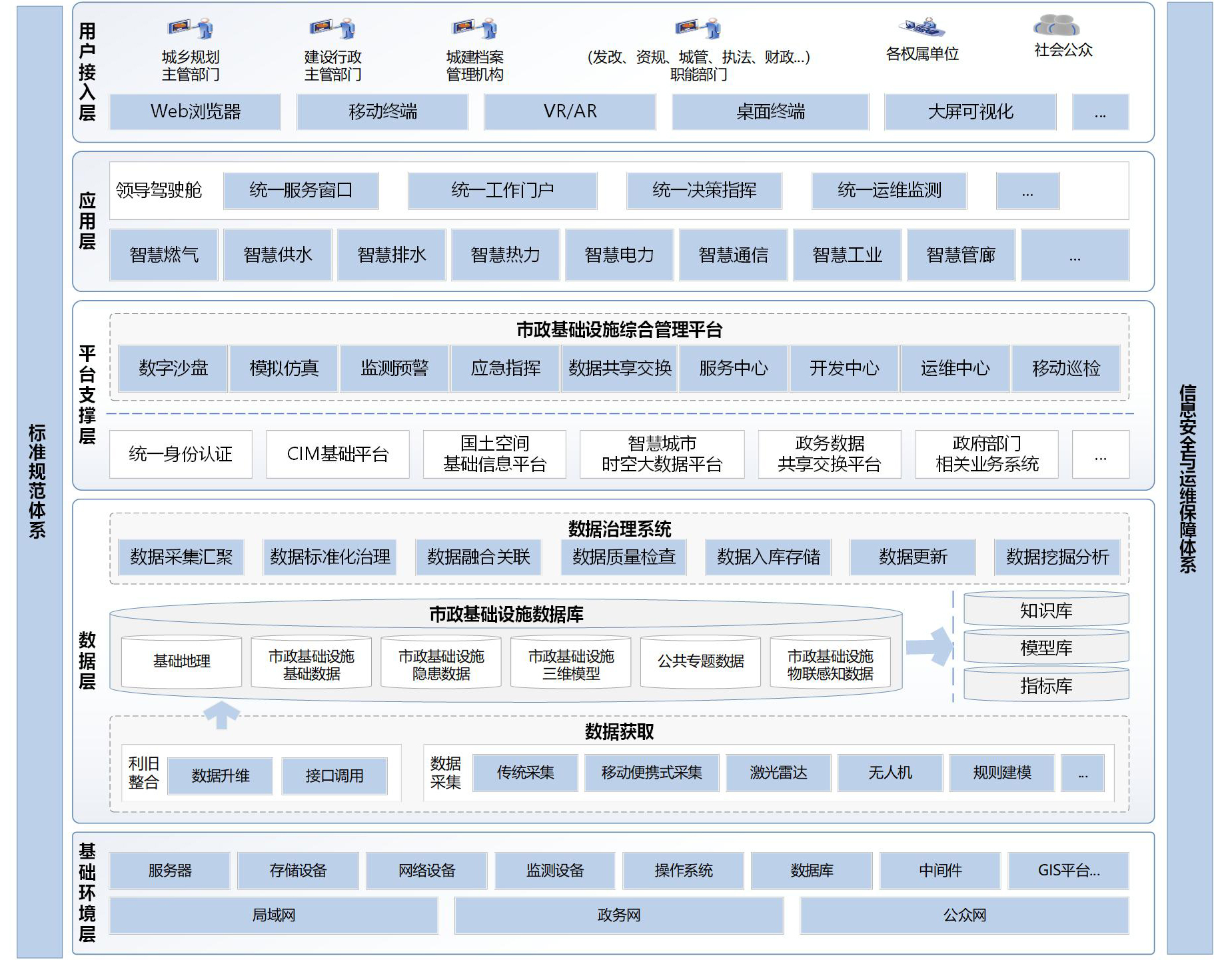 配套市政基礎(chǔ)設(shè)施運維養(yǎng)護移動端應(yīng)用建設(shè),并與Web端實現(xiàn)互聯(lián)互通,形成“實時感知、可靠傳輸、智能處理、精準(zhǔn)決策”的城市市政基礎(chǔ)設(shè)施智能化監(jiān)管體系。