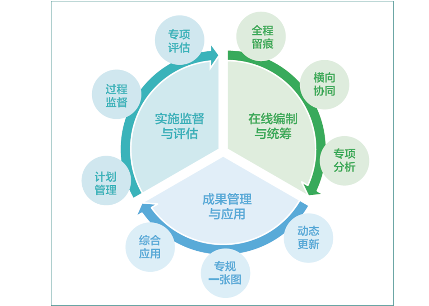 為統(tǒng)籌各行業(yè)主管部門的專項規(guī)劃編制工作,基于專項規(guī)劃目錄建立編制清單管理機制,實現(xiàn)從“編制清單擬定”到“成果歸檔入庫”全過程的線上統(tǒng)籌,確保一張清單統(tǒng)籌和動態(tài)更新維護,實現(xiàn)不同層級之間、不同地區(qū)之間的專項規(guī)劃清單式統(tǒng)籌管理。