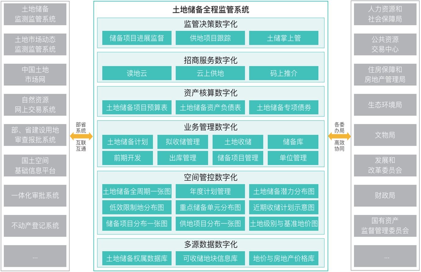 以業(yè)務(wù)工作流為導(dǎo)向,對計(jì)劃編制、土地收儲、前期開發(fā)、預(yù)出庫、出庫等實(shí)行全生命周期數(shù)字化精細(xì)化管理,通過對每個階段的數(shù)據(jù)、流程、資產(chǎn)、屬性等信息的記錄,以及與部省相關(guān)業(yè)務(wù)系統(tǒng)的互聯(lián)互通,實(shí)現(xiàn)貫穿用地報(bào)批、土地征收、土地儲備、土地供應(yīng)、土地利用開發(fā)全流程的管理。